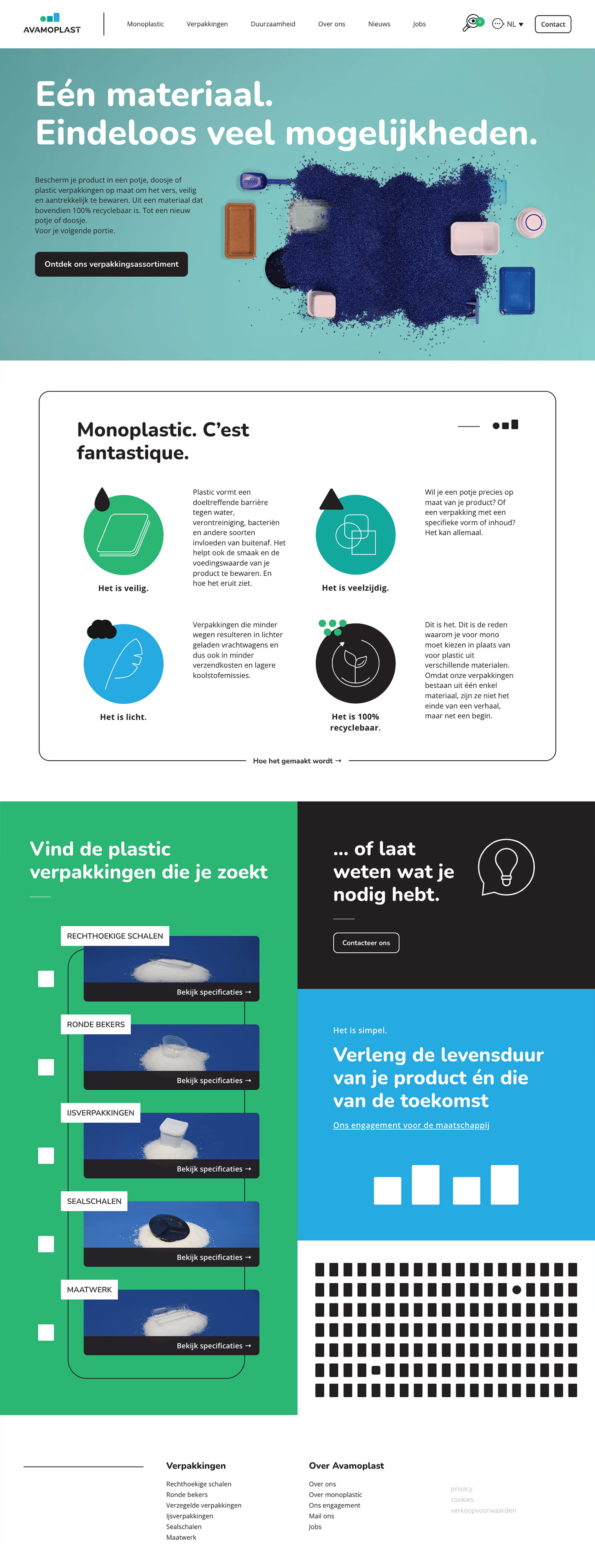 Avamoplast zet in op duurzaamheid en de veelzijdigheid van monoplastic. Een moderne, vlot navigeerbare website met een uitgebreide webshop vormen de centrale spil van hun online presence. We ontwikkelden een dynamisch opgebouwde website in meerdere talen met een grote focus op gebruiksgemak.