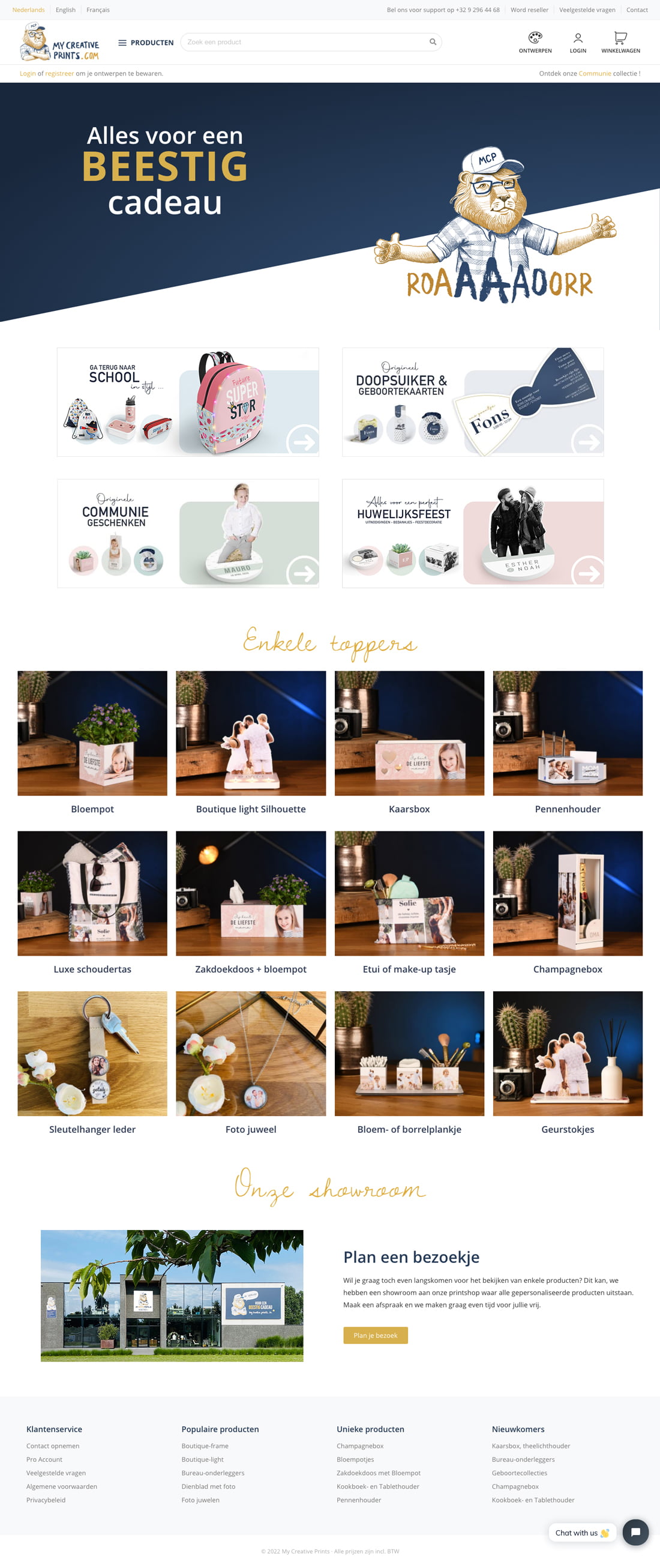 Het beheergedeelte werd volledig op maat ontwikkeld. Content creëren kan in enkele klikken -zonder afleiding- omdat enkel de nodige velden zijn voorzien. Vanuit het dashboard kunnen producten, bestellingen en andere functionaliteiten zoals e-mail marketing aangepast en beheerd worden. Dankzij de visual editor zijn er eindeloos veel mogelijkheden. Aanpassingen kunnen zo intern geregeld worden. Een echte tijdsbesparing waardoor het team van My Creative Prints zich zoveel mogelijk kan focussen op hun core business.